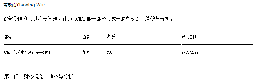 在这7个月系统学习CMA中,不但拓宽了我对会计知识的认知,同时也提升了对运营分析水平,在此,特别感谢我的美女班班,丹丹老师,没有她一直以来的鼓励与督促,我是不可能在这么短的时间内,取得这样的成绩的。