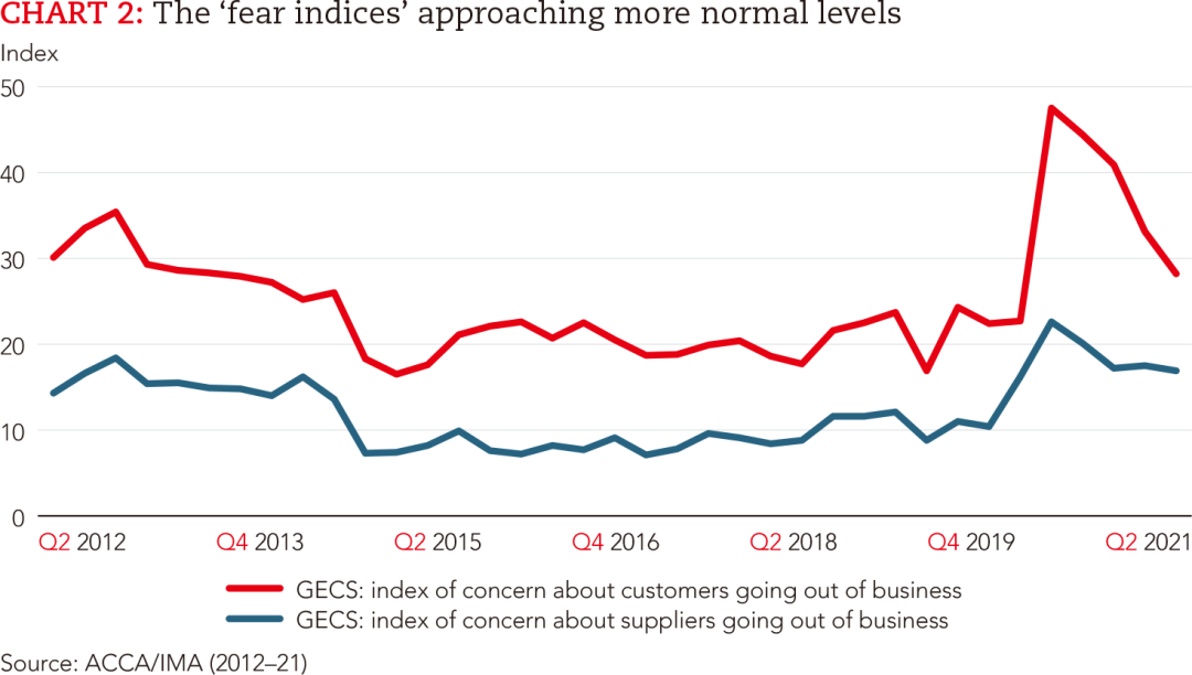ACCA中国内地事务总监于翔天认为:“长远来看,卫生防疫与经济风险依然严峻,特别是一旦某种病毒变种出现并传播,将迫使出台新的防控措施,从而延缓经济复苏。在全球和国家层面,积极的财政政策有助于私营部门实现复苏,需避免过早撤出。”