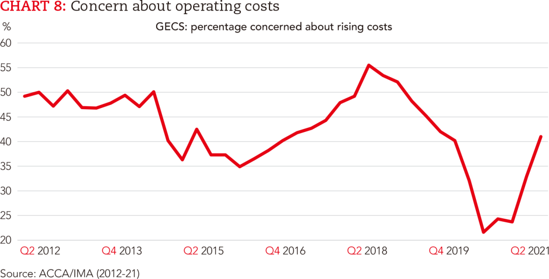 二季度调研对运营成本的担忧指数有所上升,目前处于2019年三季度以来的最高水平。但受访者的担忧程度仍不足以导致通胀持续大幅上升。